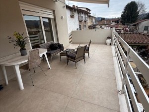 Camaiore centro appartamento indipendente posto al piano primo ed ultimo di casa singola completamente ristrutturato nel 2024 con finiture di pregio. L immobile con superficie interna di mq 120 si presenta molto luminoso e confortevole. SI accede da un' ampia scala esterna che conduce ad una grande terrazza coperta con superficie di mq 21. SI compone di ampio soggiorno, sala pranzo, cucina abitabile con annesso vano dispensa/lavanderia, un bagno di servizio, disimpegno, due camere matrimoniali con balconi e due bagni padronali rivestiti in gres onice. Riscaldamento a pavimento con termostato in ogni stanza, climatizzazione estiva di tipo canalizzata con bocchette al soffitto. Tetto completamente nuovo, sottotetto calpestabile con finestra di tipo velux, tapparelle in alluminio coibentate elettriche, tende da sole elettriche, sistema di allarme interno e perimetrale, telecamere esterne Parcheggio interno con diversi posti auto e moto e accesso carrabile automatizzato. Ulteriori due accessi pedonali.Possibile acquisto con arredamento incluso.